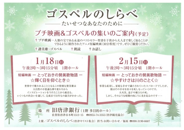ゴスペルのしらべ(1~2月開催分)