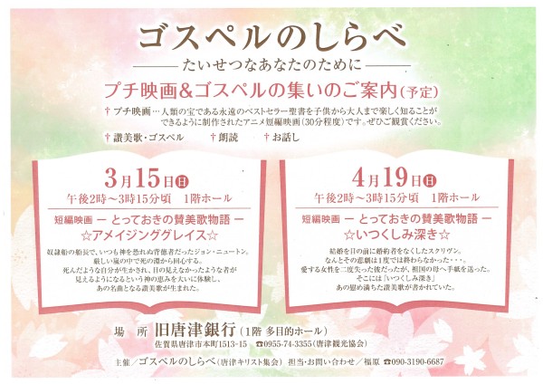 3月~4月に当館1階で開催予定の「ゴスペルのしらべ」イベント情報になります。